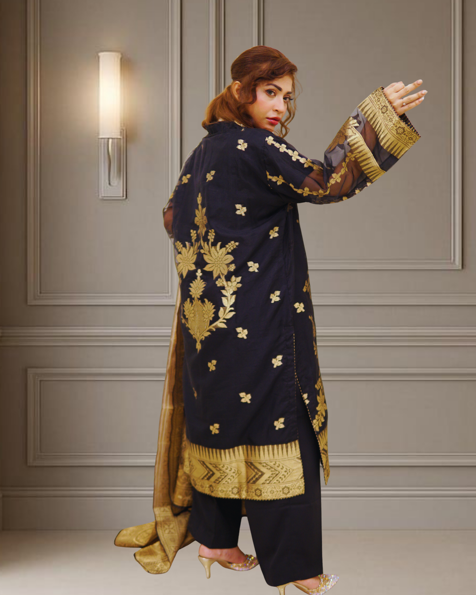 A masterpiece of timeless elegance – our 3PC Organza Jacquard is designed for the woman who adores grace and sophistication From the intricate jacquard weave to the soft flow of organza, every detail speaks of luxury. The delicate embroidery, rich texture, and subtle hues make it a perfect choice for festive soirées, weddings, and gatherings where Not just an outfit, but a statement of refined beauty – a wardrobe essential that transcends seasons.